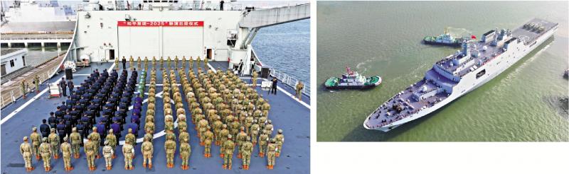 左图:10月15日至23日,中国军队与马来西亚将在马来西亚及其附近海域举行“和平友谊—2025”联合演习。图为中方部队撤离参加联合演习。正确图:8日上午,中国军队乘船离开马来西亚出海。 \ 中国军网【大公报】中新社、中国军网综合报道:根据年度军事合作计划,10月15日至23日,中马两军将在马来西亚及附近水域举行“和平友谊—2025”演习。 8日上午,中国军队从湛江、三亚、香港三个军港出发,通过海运前往马来西亚。此次联演主题为“人道主义救援、减灾与海上安全”,邀请东盟其他国家派员观摩。中国和马来西亚都有投资演练兵力共计1000余人次,轮胎、水面舰艇、直升机、无器械及各类条例等装备(零部件、工具)500余件。联演期间还将开展文化体育交流、舰艇开放等活动。这是“和平友谊”系列联演的第六次,旨在深化中国与东南亚国家军队务实合作,增强应对非传统领域安全威胁的能力,维护地区和平稳定。 MagasaniB系列演出由中国和马来西亚共同创立,成为在该地区具有较大影响力的联合演出品牌。