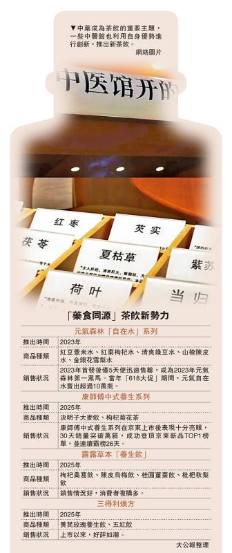 相片:中药已成为茶饮料的重要主题。一些中医诊所还利用自身优势进行现代化改造,推出新的茶饮料。 /网络图片 中国饮料工业协会理事长张金泽认为,在中国深入推行健康理念的过程中,公众对营养食品的需求不断上升,这也对饮料产品的升级换代提出了更高的要求。未来,饮料行业应继续积极探索新原料、新配方、新工艺,满足市场对更营养、更健康、更多样化饮料的需求。中国营养学会副理事长李增宁提醒我们,“中国保健水”的本质是水。这是一个G茶、汤等传统习俗的改变,而不是药物或保健食品。消费者在购买时一定要按照瓶装说明选择适合自己体质的保健水。 Z解放军总医院第五医学中心中医科副主任医师杭丽娟强调,不同体质的人,无论是药物还是食品原料的灵活性都有所不同。消费者应根据自身情况慎重选择产品,不应以常规药物治疗代替。来源:新华社